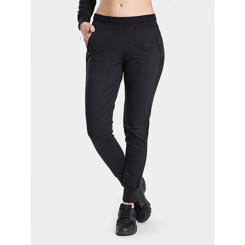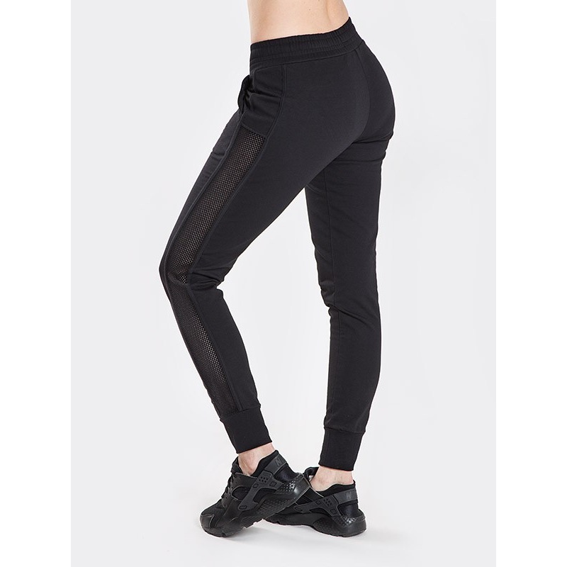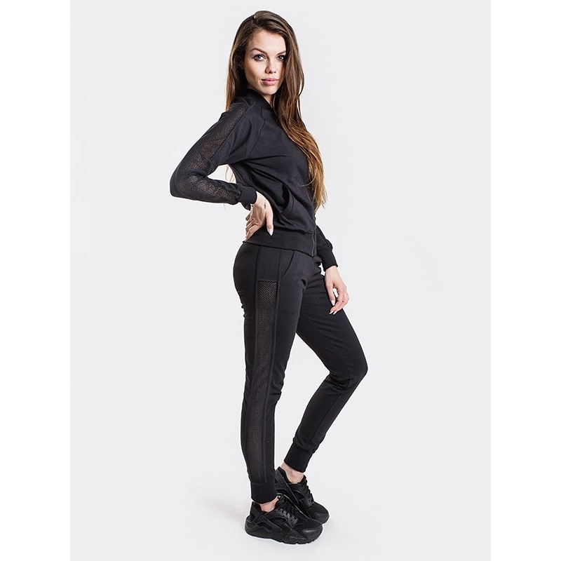 Damskie spodnie dresowe z lampasem z siatki.Wykonane z bawełny elastycznej.Wysoki stan.Hafcik z boku nogawki.95% bawełna 5% elastan, 290 g/m2