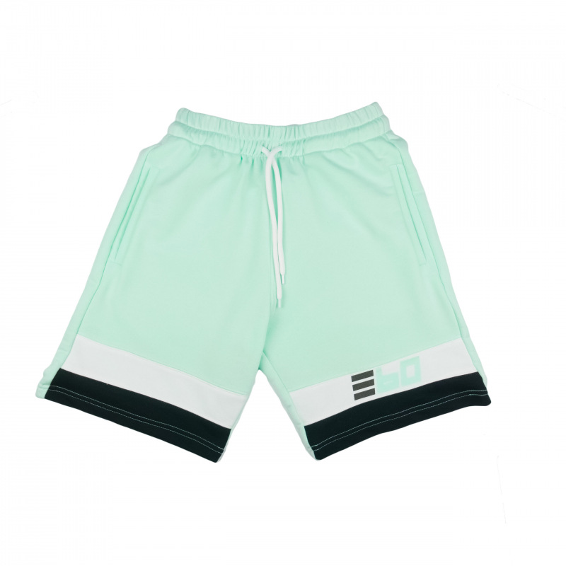 Klasyczne spodenki męskie ze wstawkami. Na froncie nadruk wykonany trwałą techniką sitodruku.