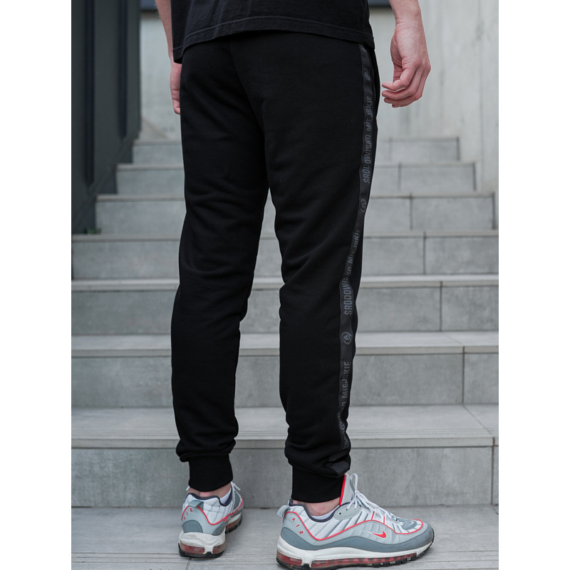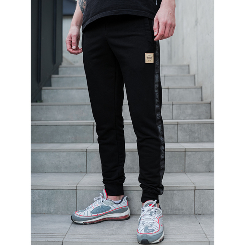- Na lewej nogawce żakardowa aplikacja z logo