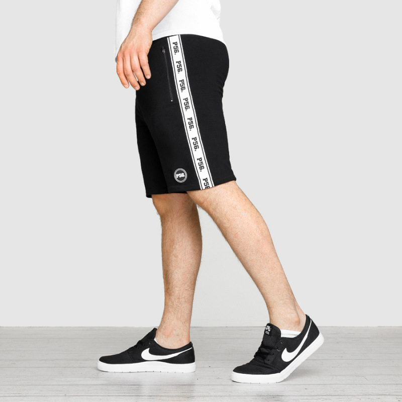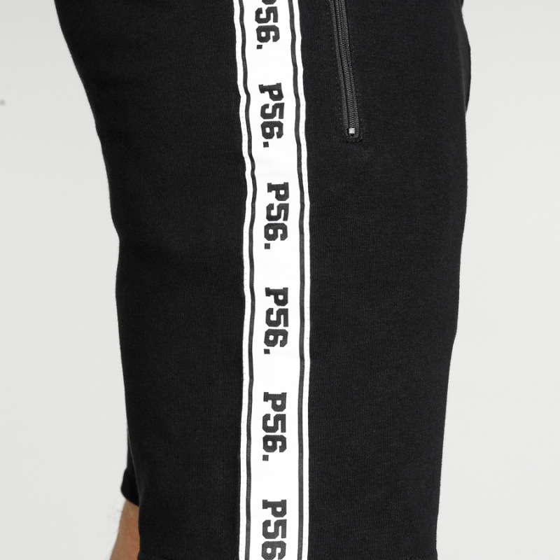 na zewnętrznej stronie nogawek, naszyte firmowe lampasy P56