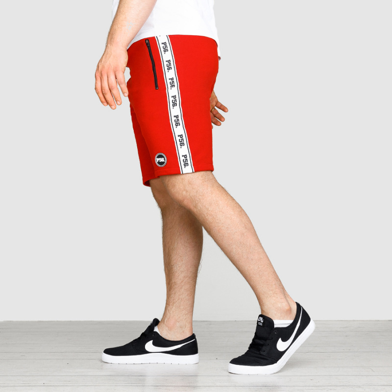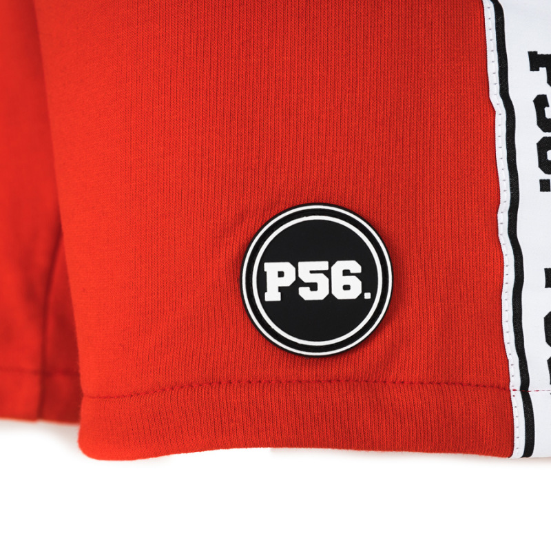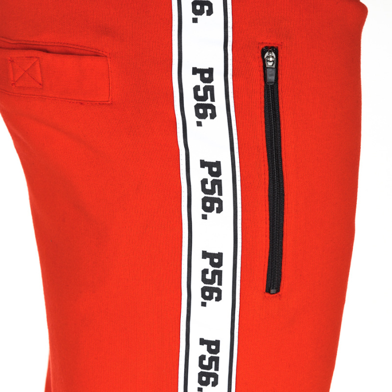na zewnętrznej stronie nogawek, naszyte firmowe lampasy P56