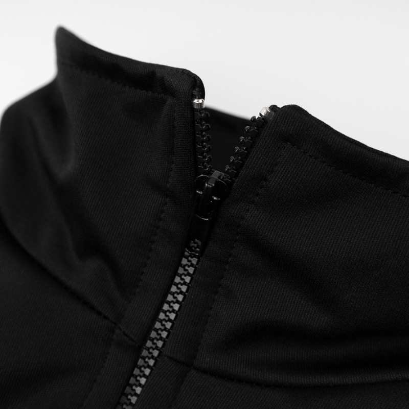 Główne zamki i kieszenie są wyposażone w zamki żyłkowe, co podkreśla nowoczesny charakter bluzy oraz jej funkcjonalność.