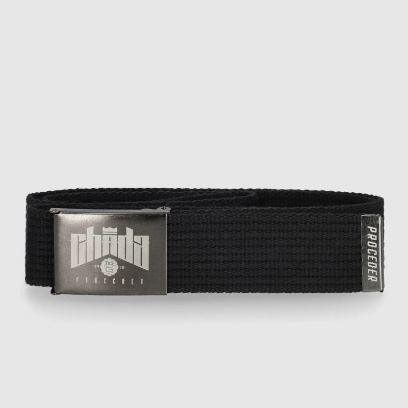 Pasek parciany marki ProcederMateriał: 50% bawełna, 50% poliesterWyprodukowano: w PolsceCechy produktu:Na klamrze duży grawerWymiary klamry: 4cm x 6 cmObwód paska: 120 cmSzerokość paska: ok. 4 cm