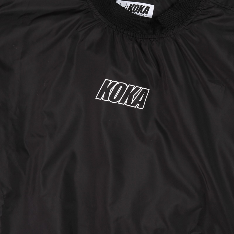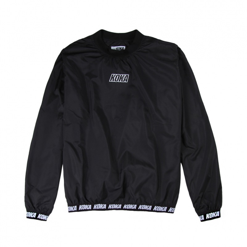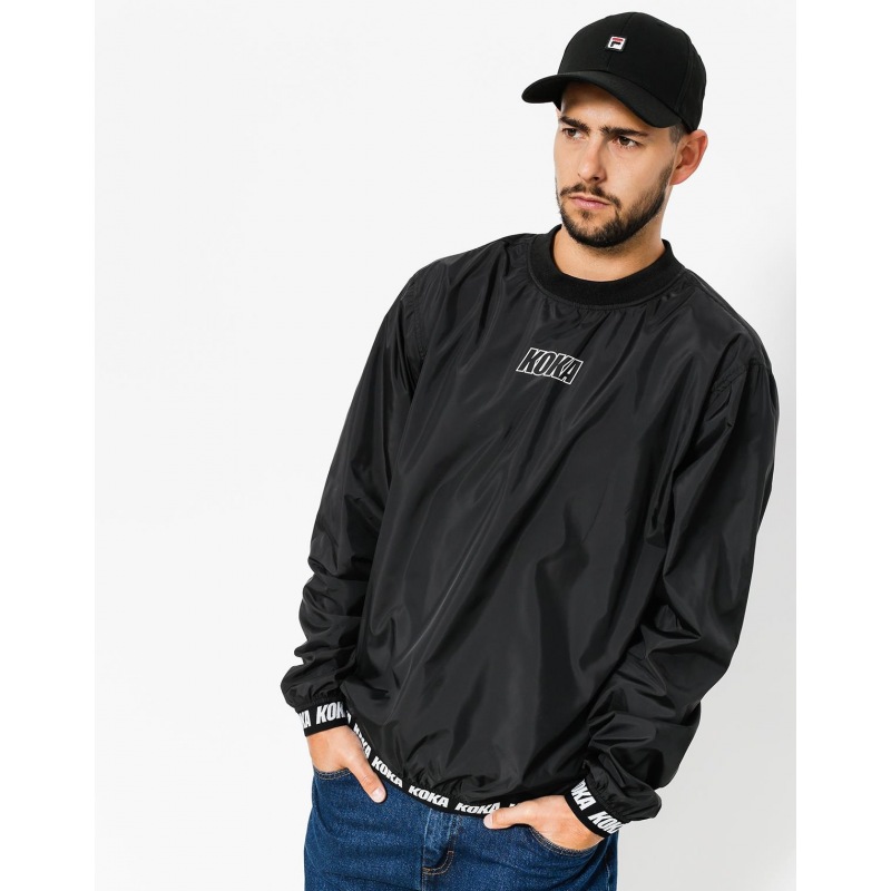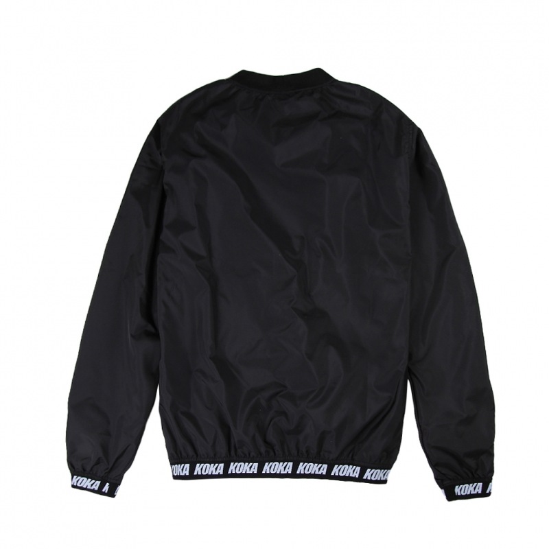 Kurtka crewneck z cienkiego materiału kurtkowego. Typu windbreaker na podszewce z siatki.