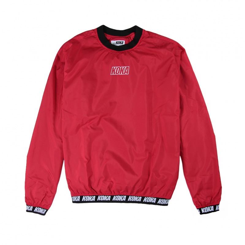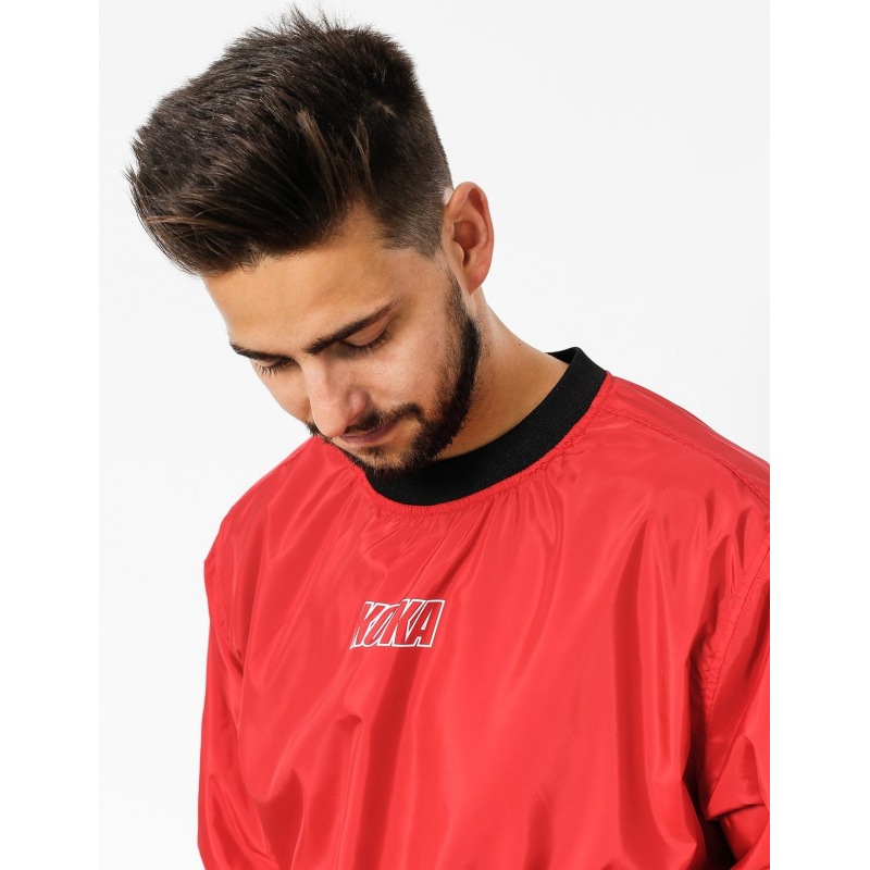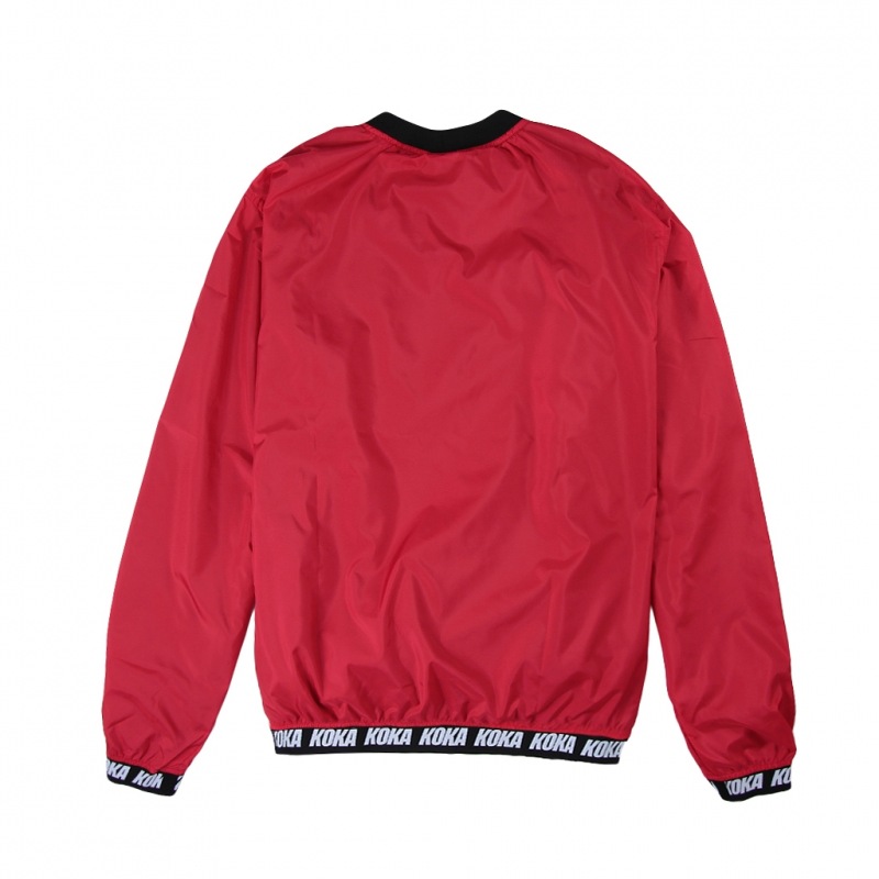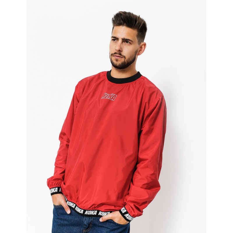 Kurtka crewneck z cienkiego materiału kurtkowego. Typu windbreaker na podszewce z siatki.