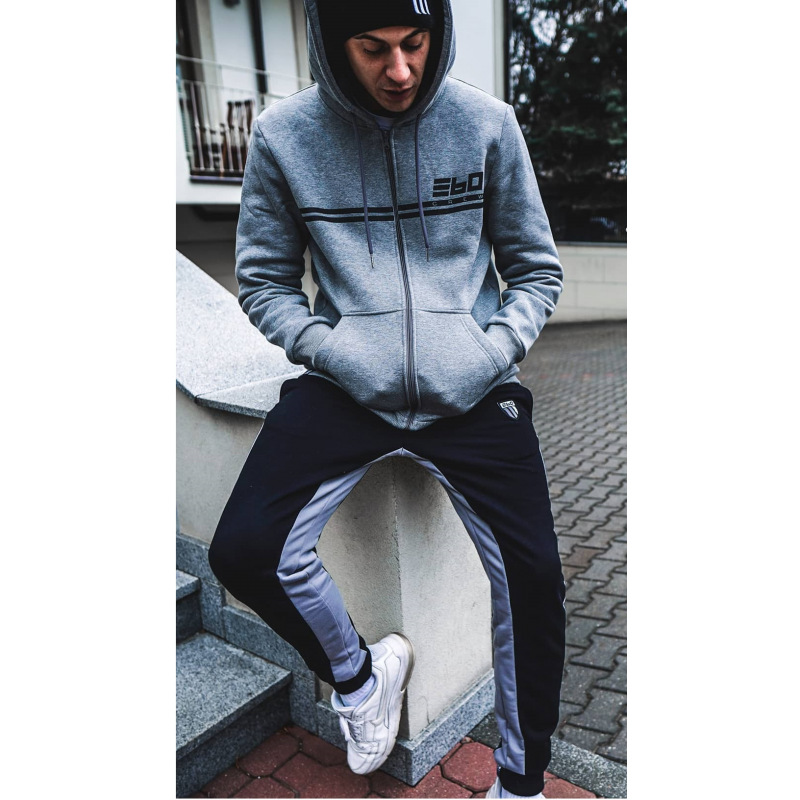 Klasyczny dres męski o slimowanym kroju ze wstawkami. Pas z możliwością