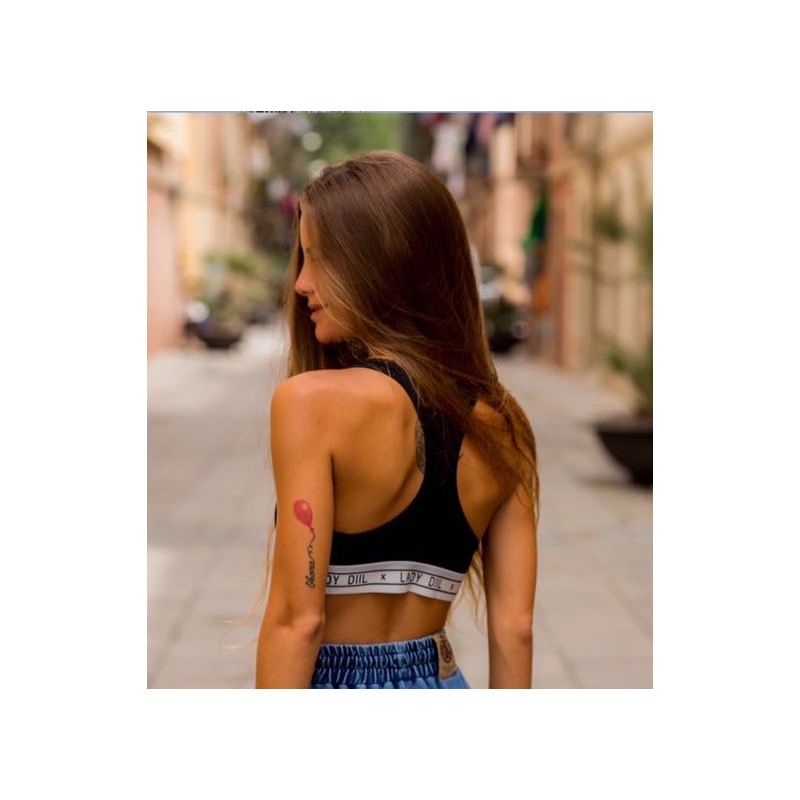 Top sportowy. Szybko schnąca. Szeroka, elastyczna taśma pod biustem zapewnia optymalne dopasowanie do sylwetki. Tylny dekolt typu bokserka.Na taśmie umieszczona jest nazwa LadyDiil. Produkt dostępny w dwóch kolorach.