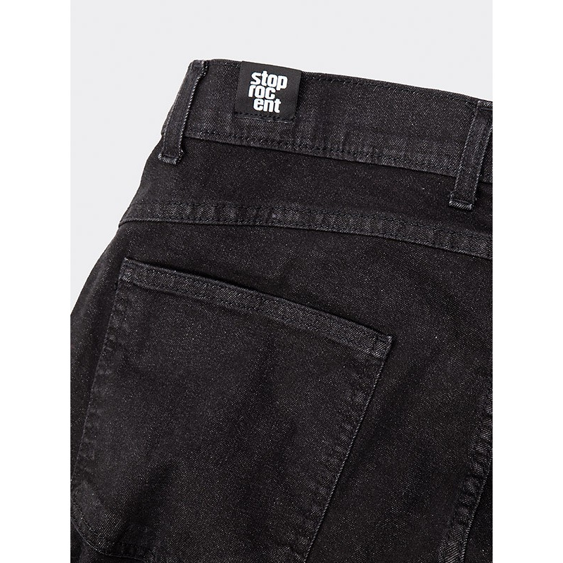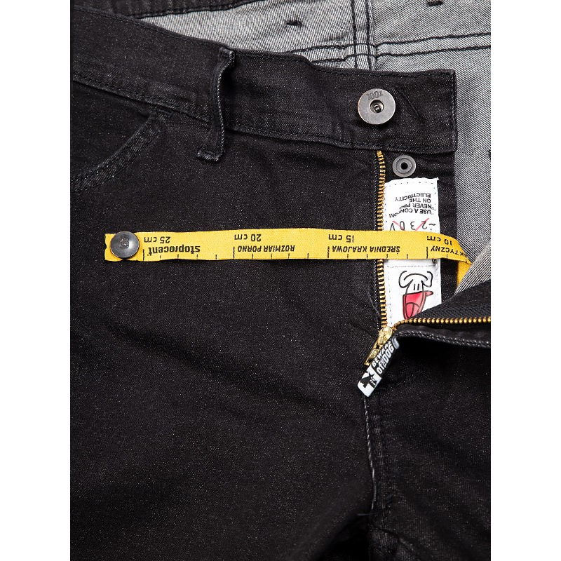 Czasami wystarczy naprawdę niewiele, żeby tworzyć kapitalną odzież – jak na przykład te eleganckie spodnie w kroju slim regular. Czarny guzik, srebrny zamek, kieszenie boczne plus kondomówka, do tego wszywka „Zły Pies” przy rozporku oraz haft z logo Stoprocent® na tylnej kieszeni. Tylko tyle i aż tyle.