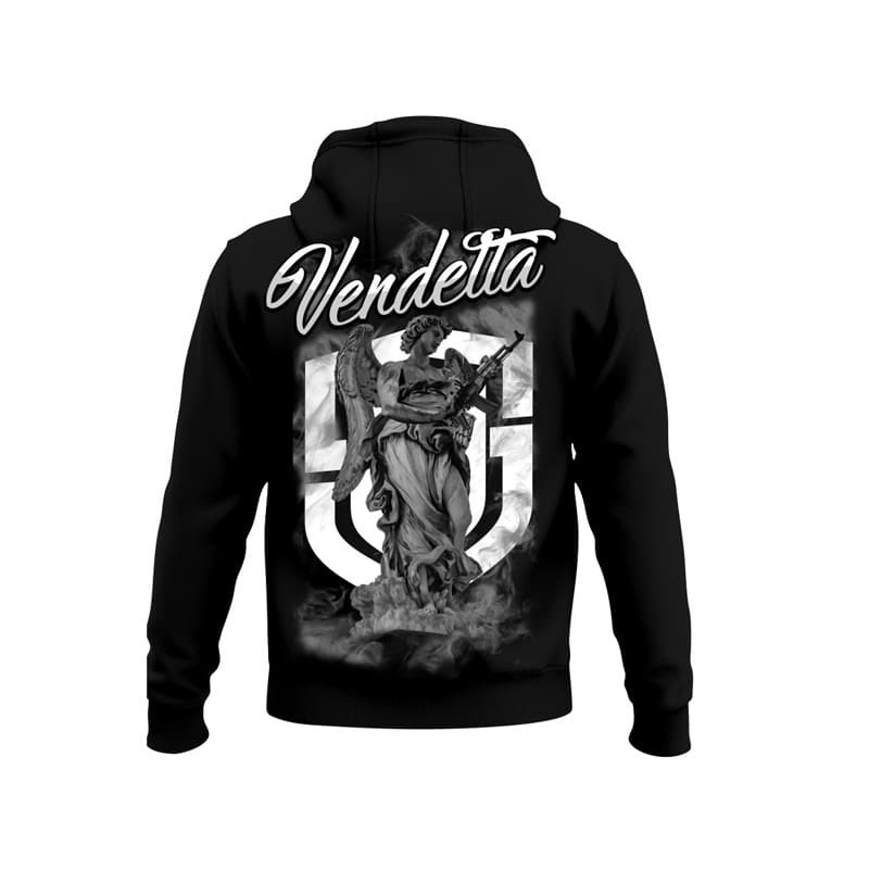 – VENDETTA – MEN COLLECTION – 80% BAWEŁNA 20% POLIESTER – 290/PĘTELKA – KRÓJ: KLASYCZNY – PRZEZNACZENIE: ODZIEŻ CODZIENNA/SPORT – METODA ZDOBIENIA: PRZÓD:FLEX 3D TYŁ: SITODRUK