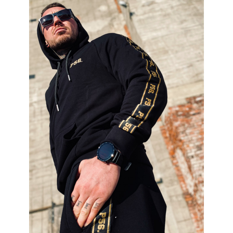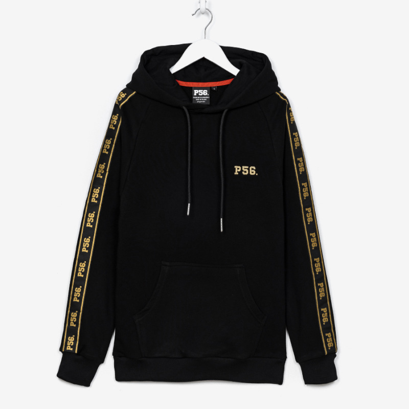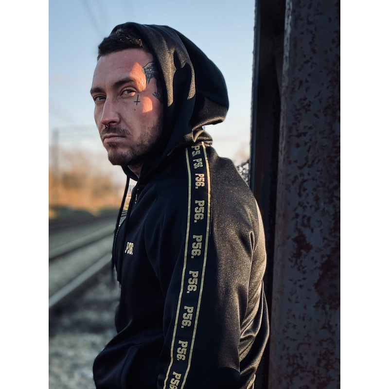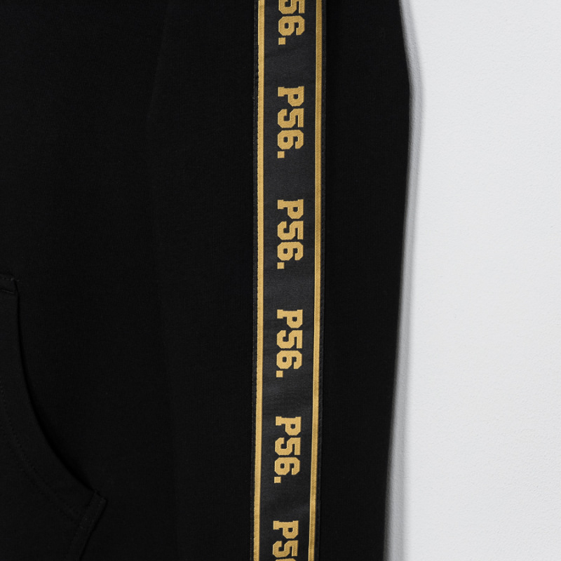 wzdłuż rękawów breandowane czarno-złoa taśma z logiem P56