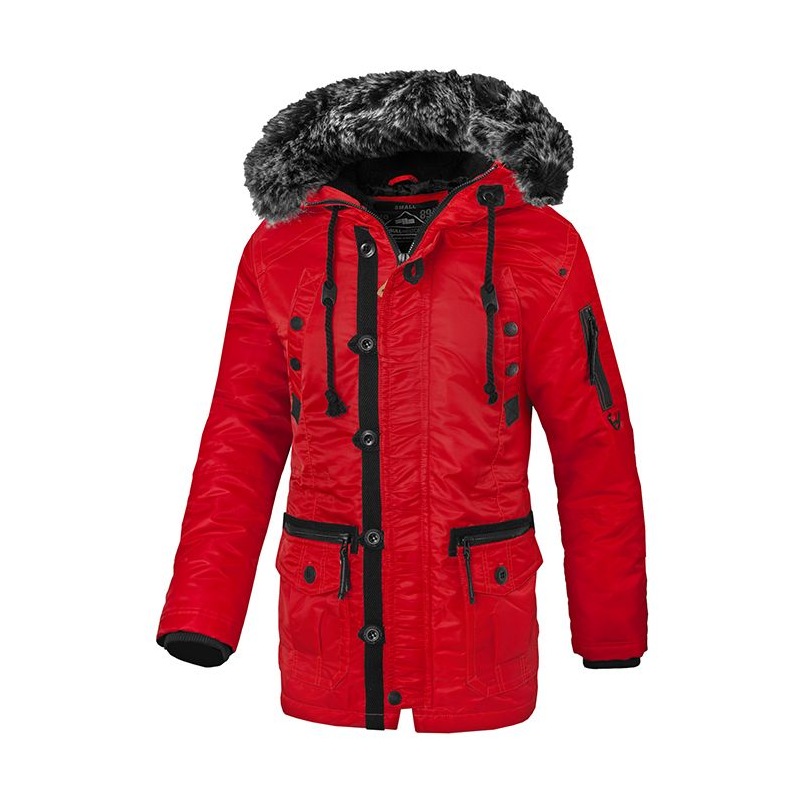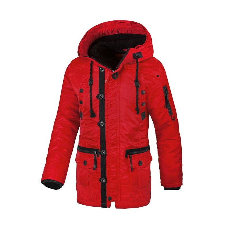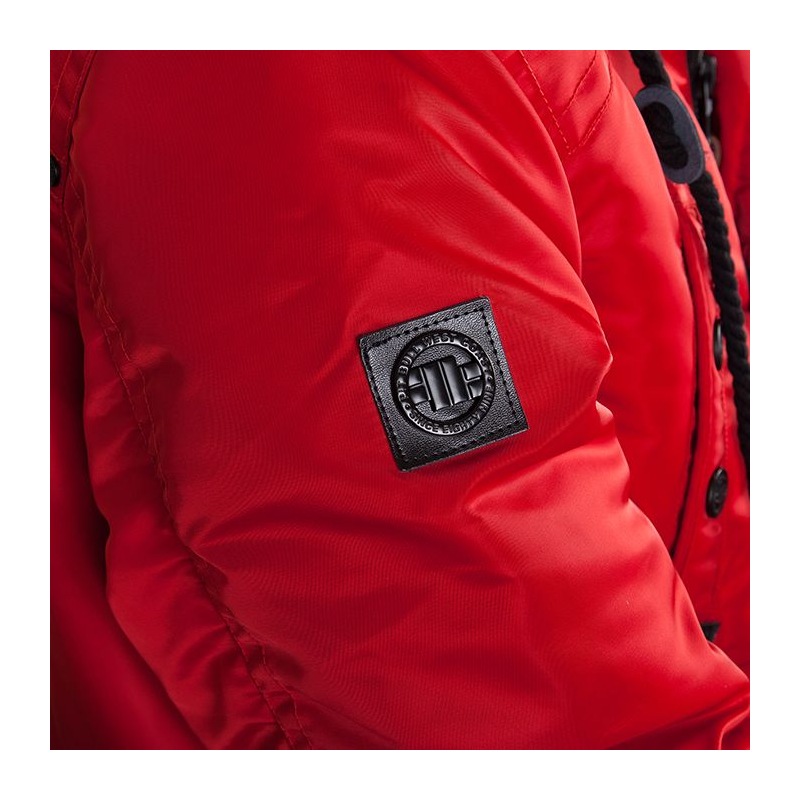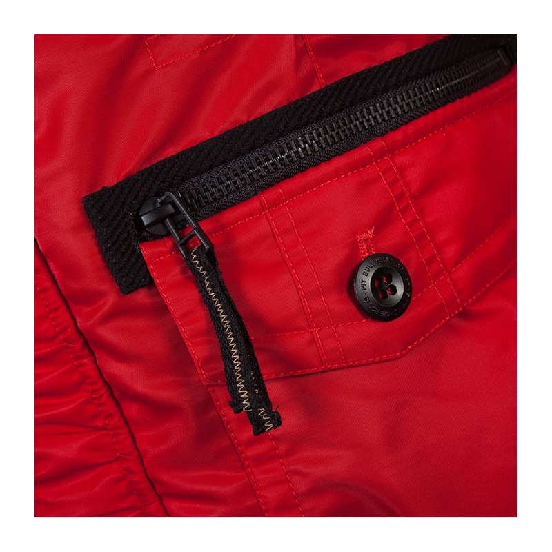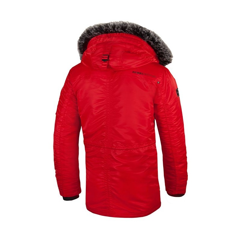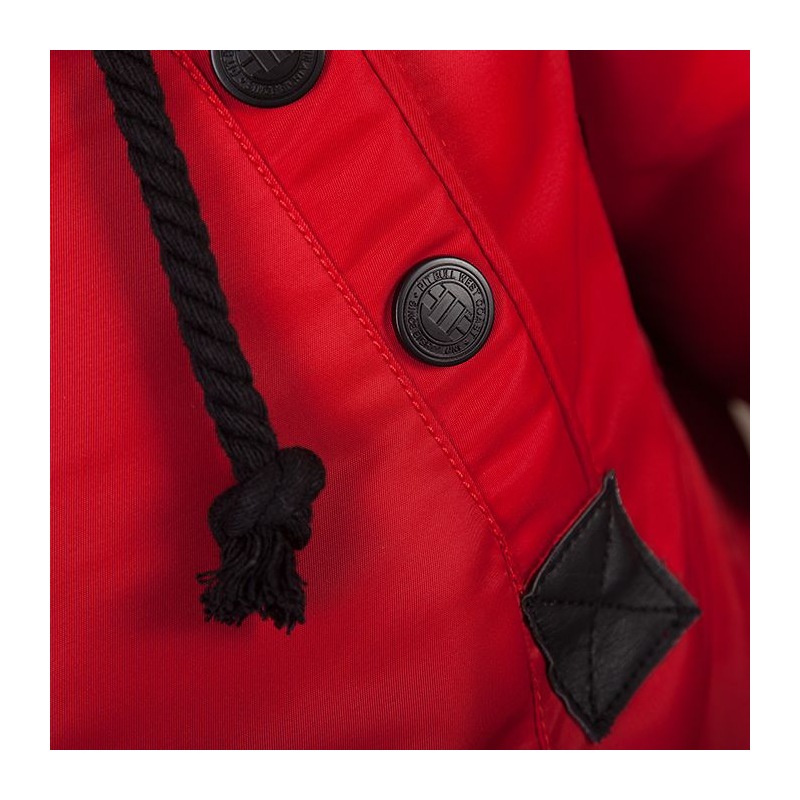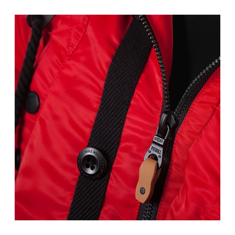 Czerwona kurtka zimowa Pit Bull Old Cliffs to alternatywa dla tych osób, które szukają ciepłej i stonowanej kolorystycznie odzieży na zimę. Kurtka została uszyta w całości z wiatroszczelnego nylonu i podszyta dodatkową warstwą ocieplanej podszewki. Za dodatkowe podniesienie komfortu cieplnego, w rękawach umieszczono mocne ściągacze oraz futrzany, miękki kołnierz doczepiany do kaptura, który osłoni twarz przed śniegiem i ostrymi podmuchami wiatru.