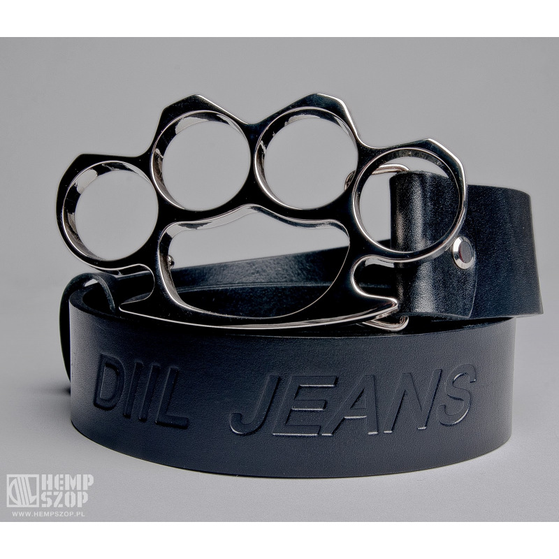 Pasek wykonany z najlepszej jakości skóry, z wytłoczonym logo "DIIL JEANS"z dużą klamrą w kształcie kastetu.