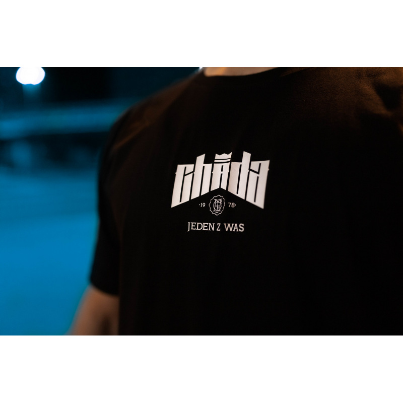 Małe logo Proceder - od frontu z wstawką upamiętniający wydany w 2012 roku album “Jeden z Was".