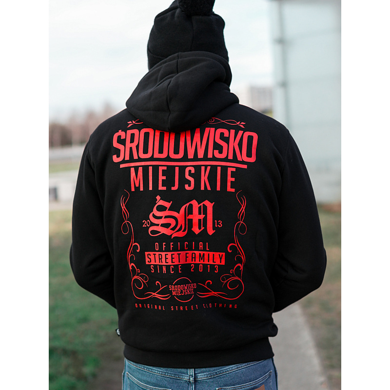 Bluza Środowisko Miejskie - "Theme" przedstawia zupełnie nowy wymiar symbolu naszej marki. Unikatowy wzór cieszy się największym powodzeniem, dzięki jedynym w swoim rodzaju nadruku na plecach. Występuje w różnych wersjach kolorystycznych - znajdź i zamów swój ulubiony kolor! Odważny styl wraca na ulice - musisz ją mieć w swojej szafie! Tkane metki znajdują się: w prawym dolnym rogu bluzy, oraz przy ściągaczu wewnątrz karku. Bluza uszyta została z wysokiej klasy 100% bawełny o gramaturze 280g. Nadruki wykonane technologią sitodruku, dzięki czemu są bardzo wytrzymałe i odporne na ścieranie. Nasze kroje zostały poprawione, aby idealnie pasowały dla męskiej, jak i damskiej części naszych fanów. Poprawiliśmy również rękawy - teraz nie są takie szerokie.