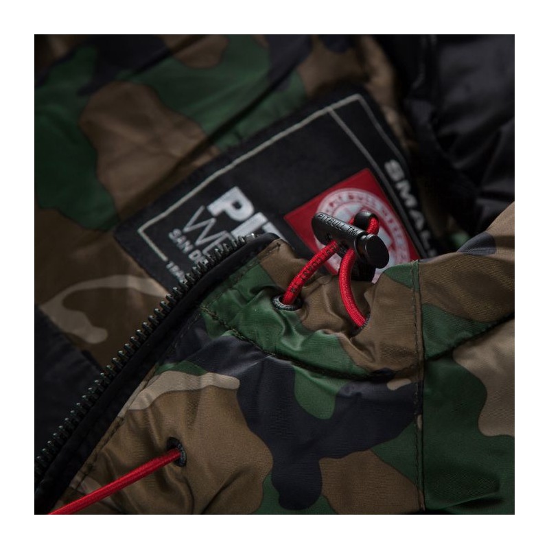 Kurtka Pitbull Gatlin sygnowany jest logo producenta w formie naszytej aplikacji na przodzie oraz logo producenta na kapturze.