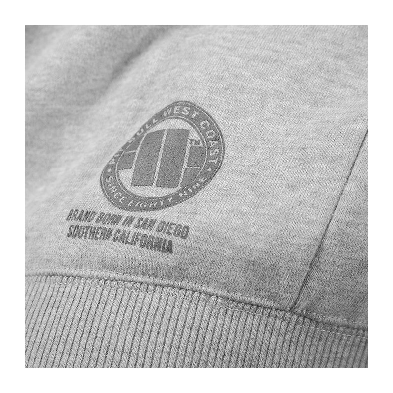 Na froncie umieszczono duży napis z nazwą i datą powstania firmy PitBull West Coast. Nad dolnym ściągaczem naszyto materiałową aplikację z logo marki. Takie oznaczenie znajduje się też z tyłu, na dole bluzy. Na ramieniu widnieje skórzana naszywka.
