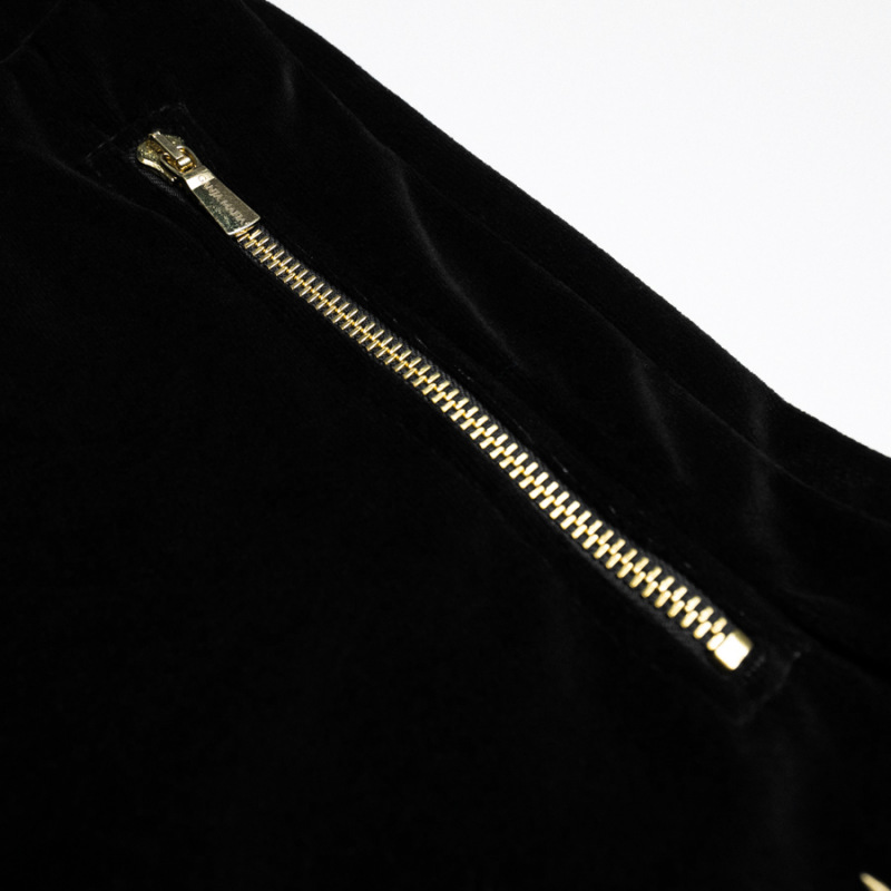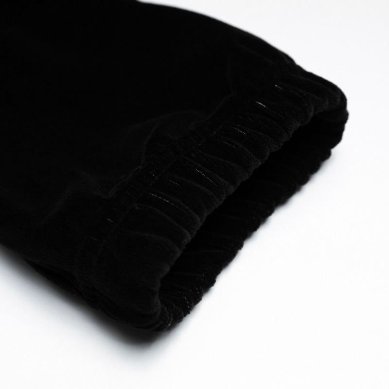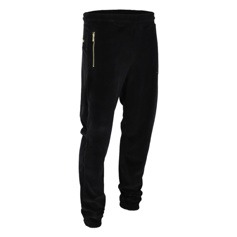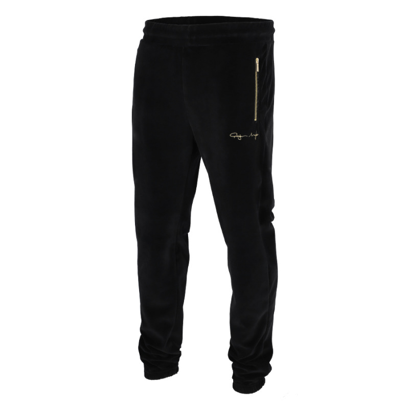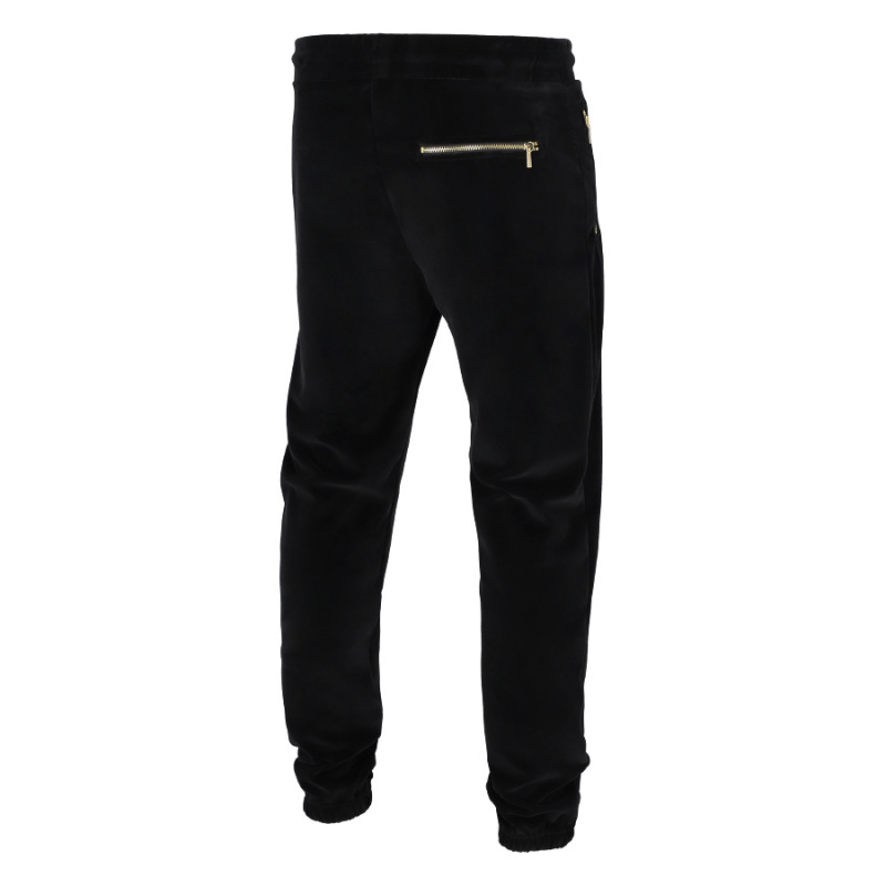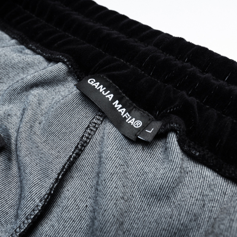 Spodnie dresowe marki Ganja MafiaMateriał: welurCechy produktu:z przodu na udzie mały haftdwie kieszenie przednie, jedna tylnawszystkie kieszenie zapinane na zamek