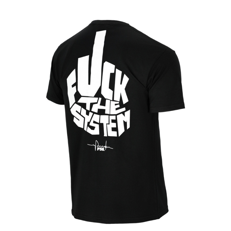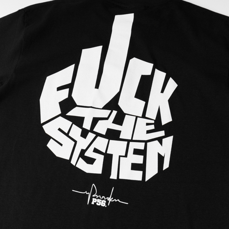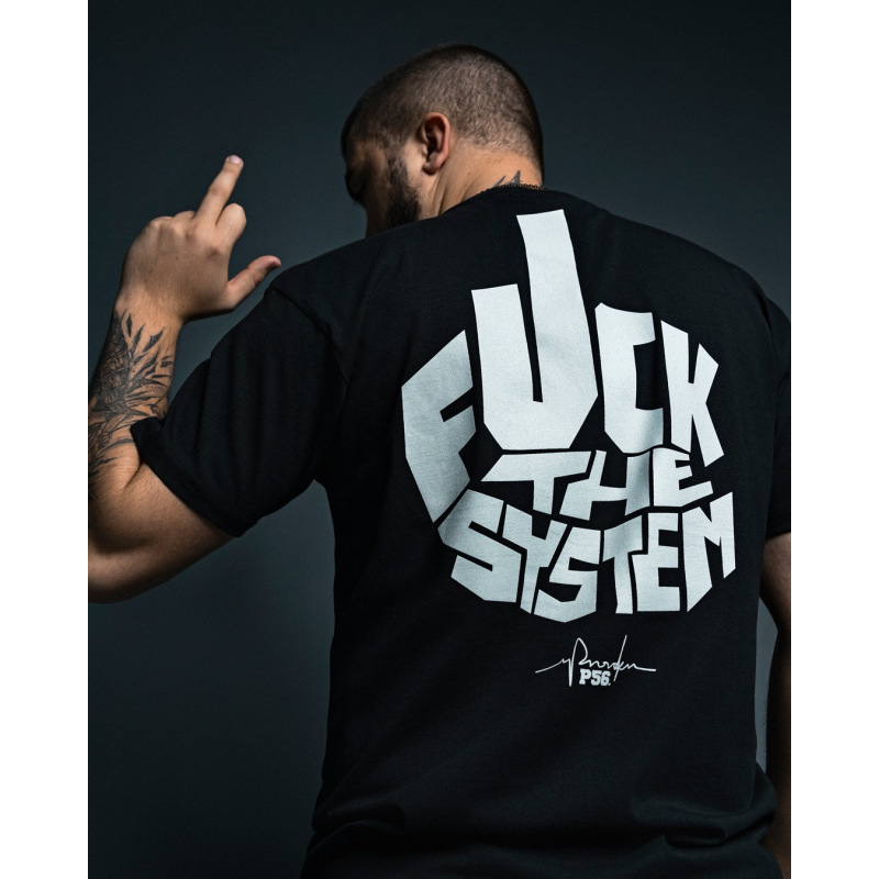 Cechy produktu: z przodu na piersi mały nadruk z tyłu na pleach duży nadruk FUCK THE SYSTEM koszulka o klasycznym kroju Regular Fit, wykonana z najwyższej jakości dzianiny