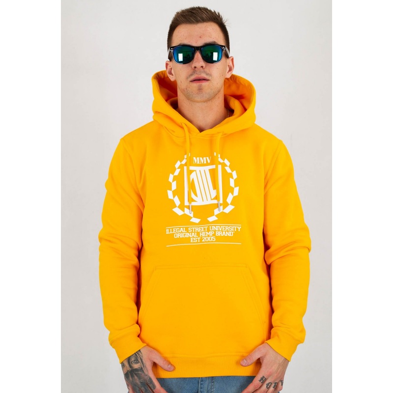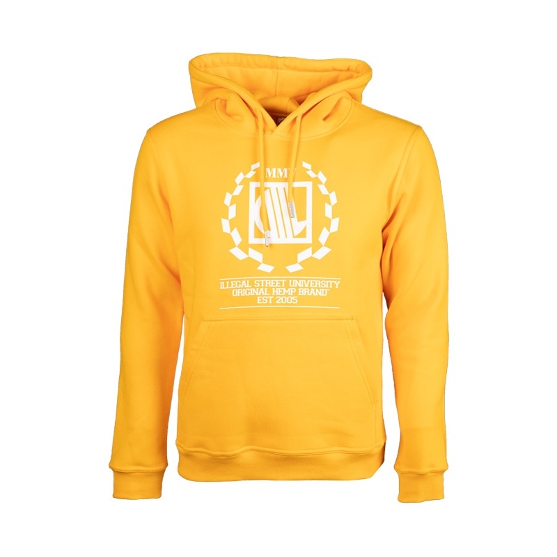 Klasyczna bluza kangurka. Na przodzie duży nadruk wykonany w technice sitodruku. Okrągłe sznurki pod kolor dzianiny zakończone metalowymi okuwkami. Z tyłu na karku żakard w formie tarczy. Bluza uszyta z bawełny najwyższej jakości, z dbałością o detale. Wyprodukowano w Polsce
