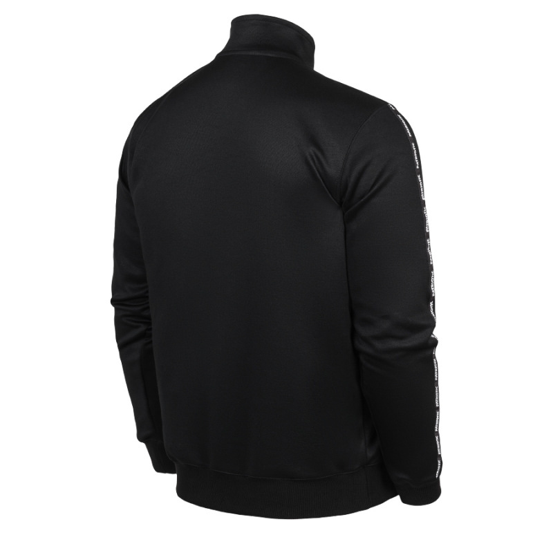 Cechy produktu: z przodu mały haft na lewej piersi wzdłuż rękawów firmowe lampasy kieszenie zamykane na zamek wszystkie suwaki doposażone w obrandowane metalowe zawieszki obrandowane wykończenie wnętrza karku