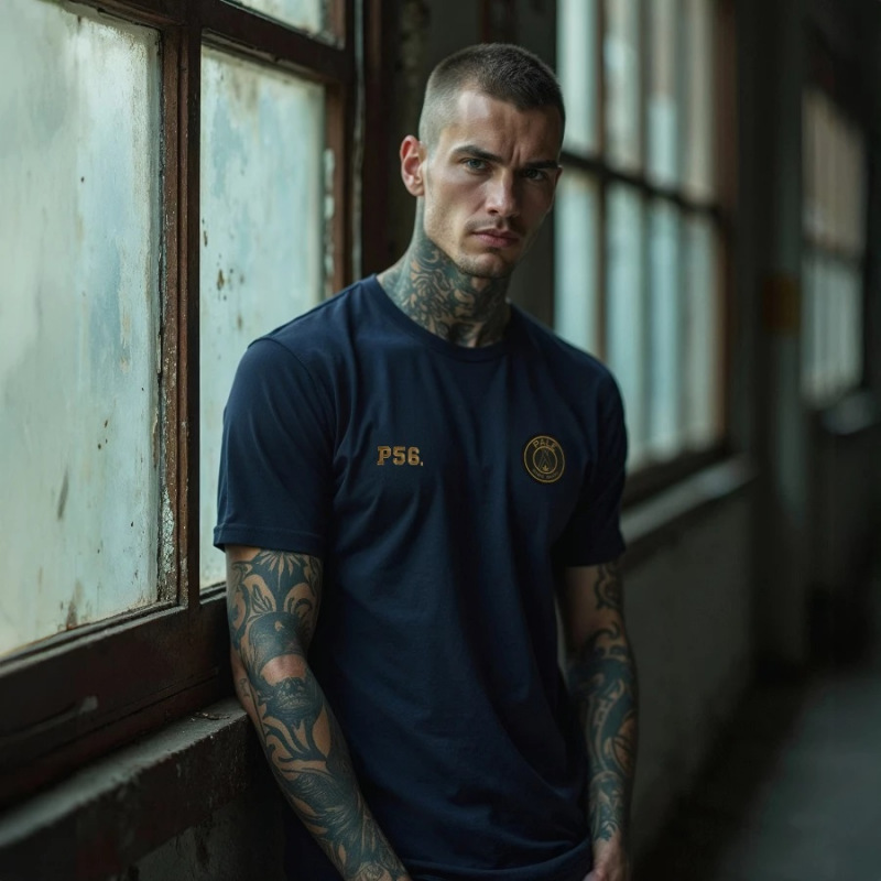 z przodu haftowane logo P56 oraz naszyta firmowa żakardowa aplikacja