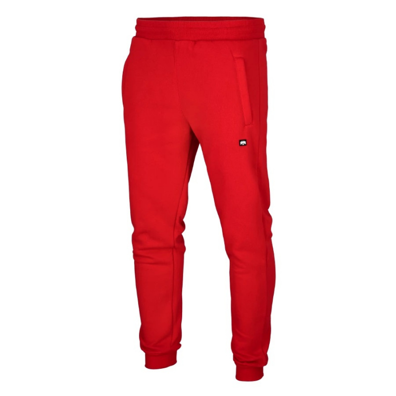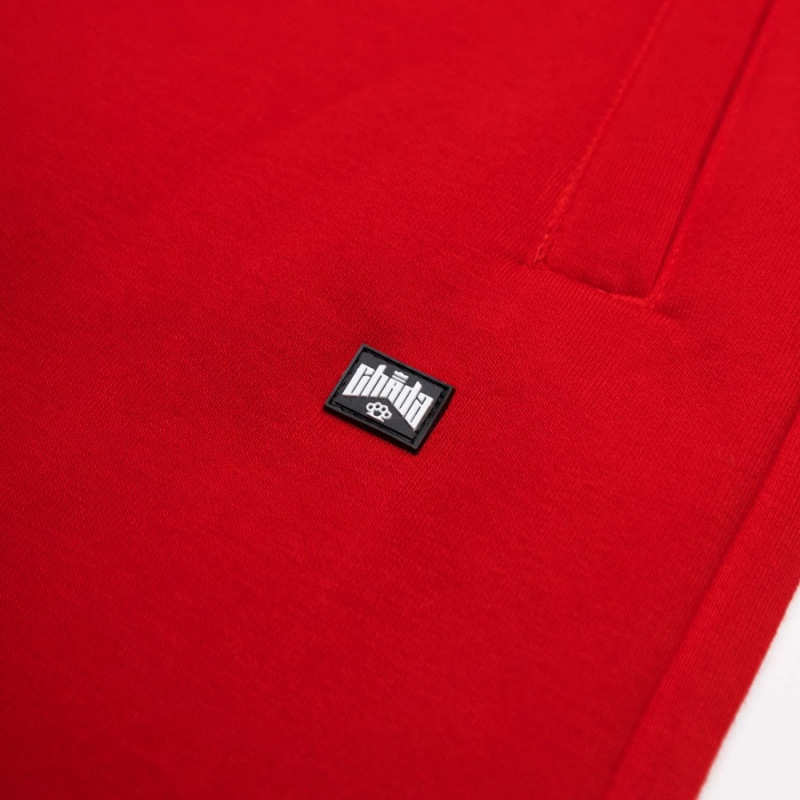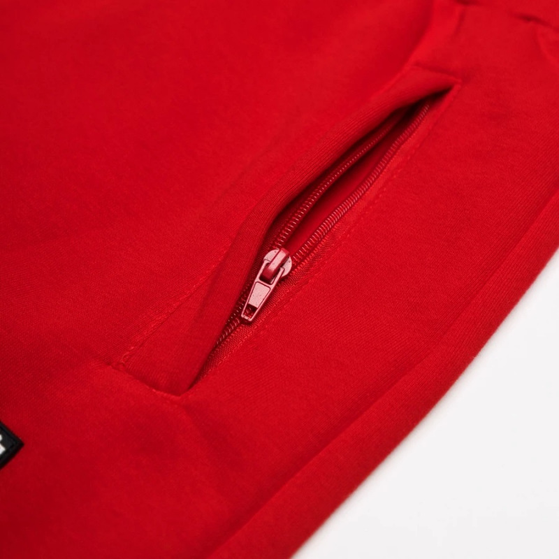 z przodu na lewym udzie naszyta gumowa aplikacja z logo
