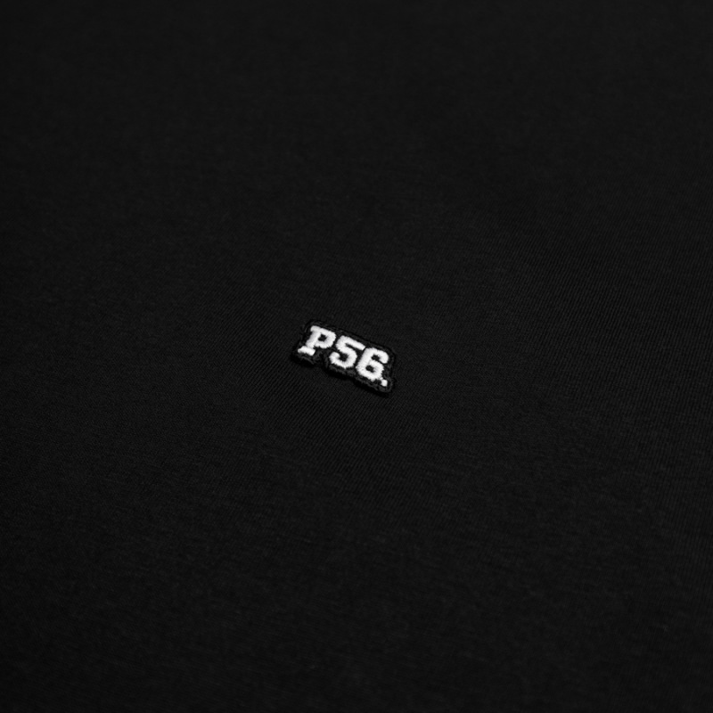 z przodu na lewej piersi firmowa haftowana aplikacja P56