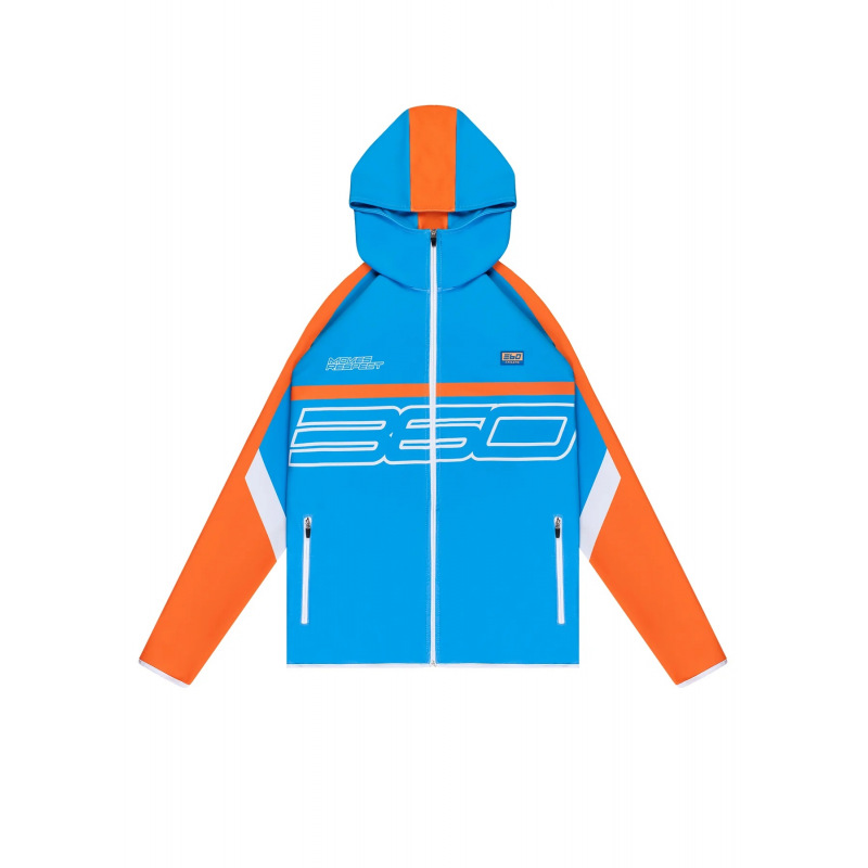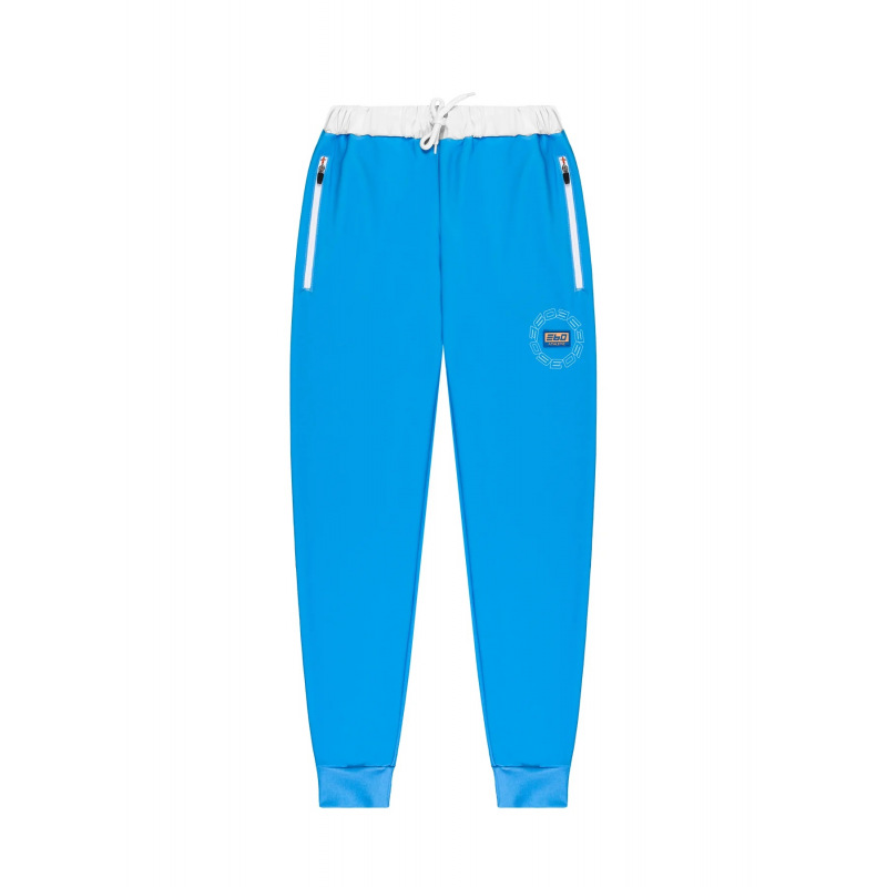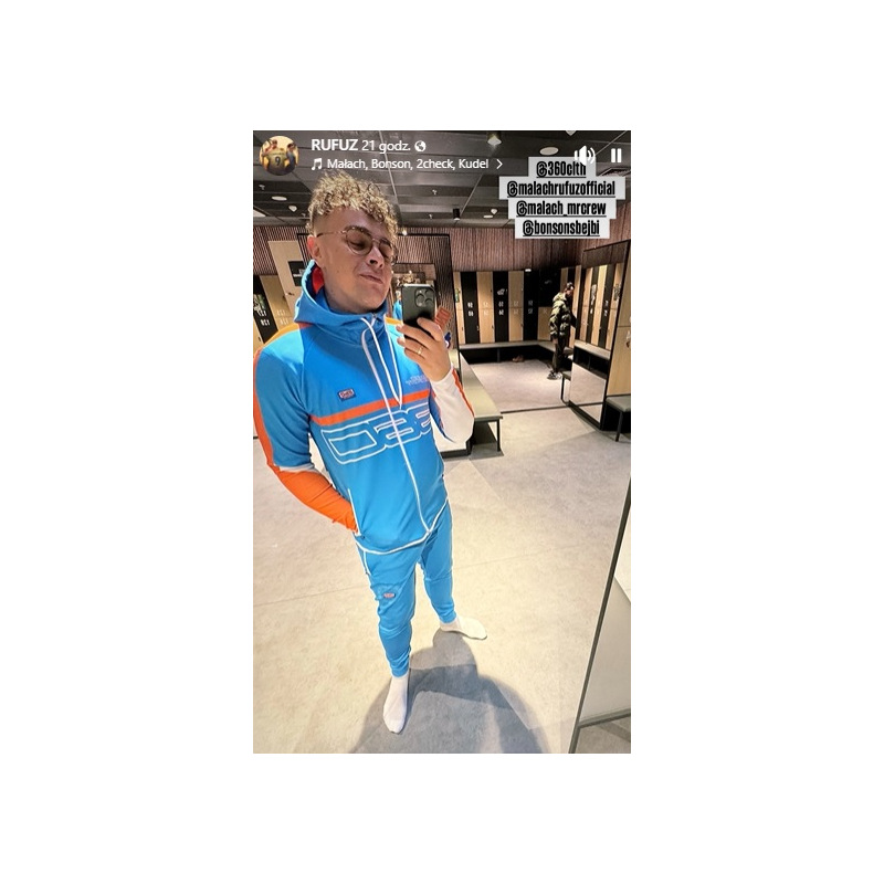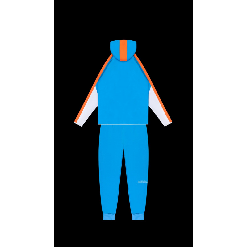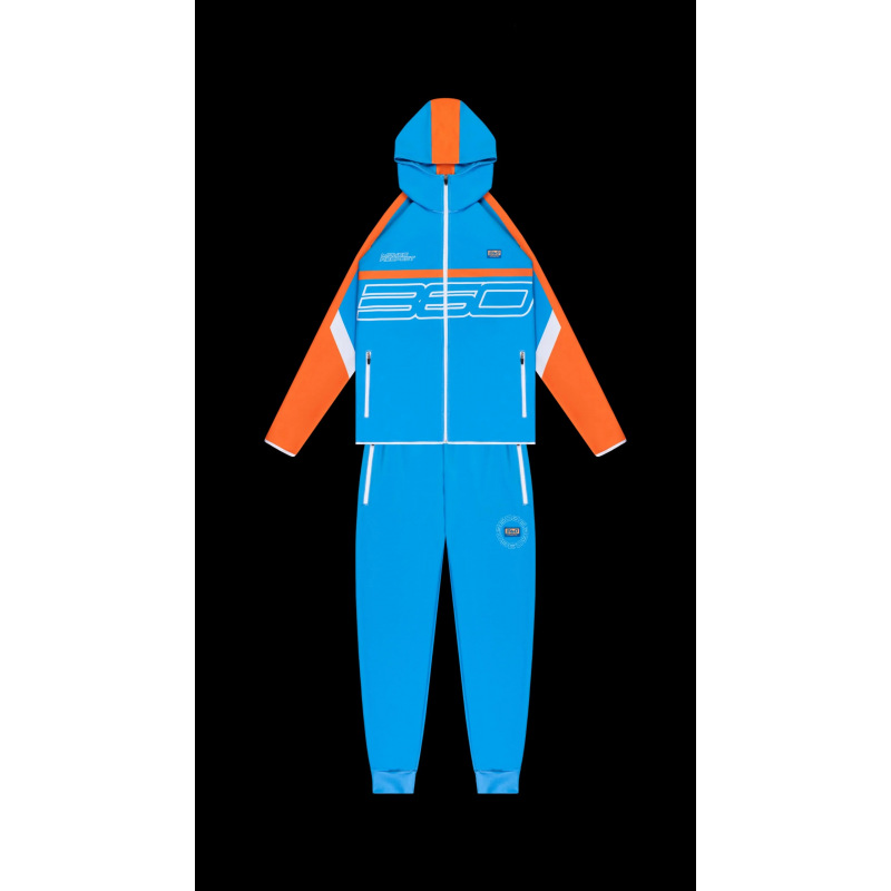 Komplet dresowy o sportowym charakterze. Wykonany 100% z poliestru połączonego z elastanem. Idealnie sprawdza się przy aktywnościach fizycznych w pomieszczeniach oraz na świeżym powietrzu. Dopasowany krój umożliwia pełen zakres ruchu oraz swobodę. Bluza komin z kapturem na suwak, na piersi gumowy emblemat 360 Athletic. Spodnie posiadają wąskie nogawki o sportowym kroju, sznurek oraz gumę regulującą w pasie, dodatkowo suwaki w kostkach.