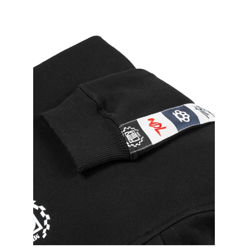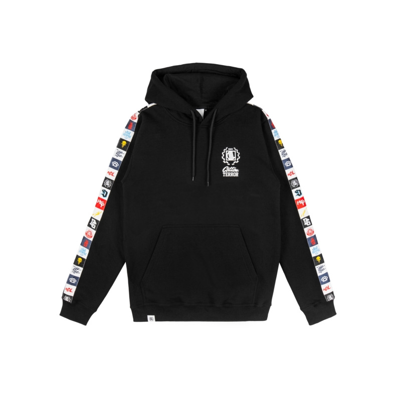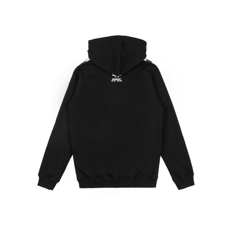 Klasyczna bluza męska z kapturem o reguralnym kroju. Na rękawach naszyta taśma żakardowa z logo. Kaptur z możliwością regulacji za pomocą sznurka. Na froncie i plecach aplikacja drukowana w jednym kolorze oraz żakard firmowy. Nadruki wykonane trwałą techniką sitodruku. Bluza uszyta z bawełny najlepszej jakości z dbałością o detale. Gramatura 280g/m2. 90% Bawełna, 10% Poliester. Wyprodukowano w Polsce.