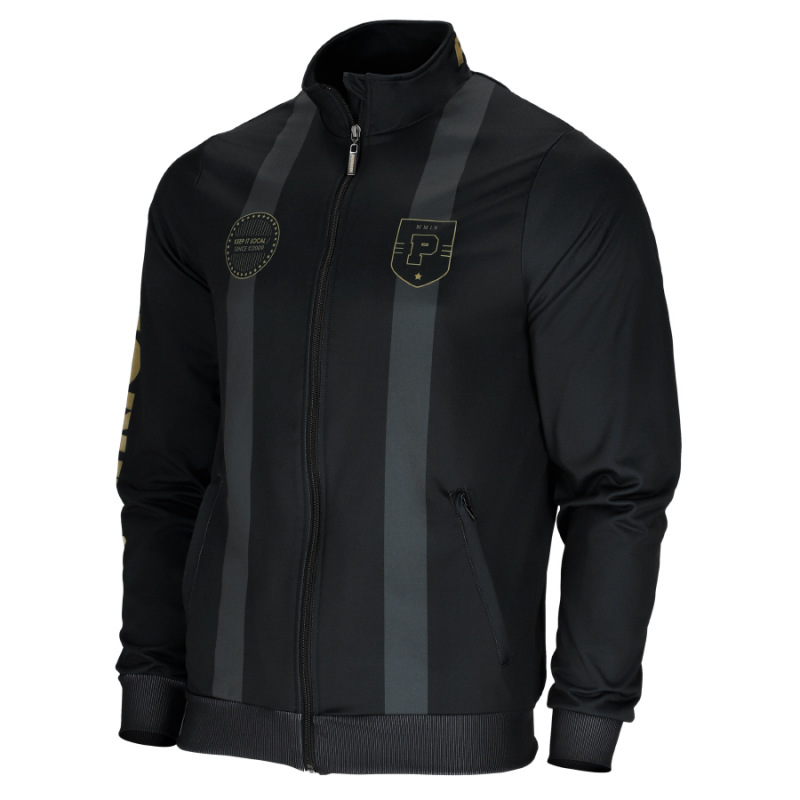 Produkt zdobi także złote logo na rękawie i stójce oraz sublimowane aplikacje.