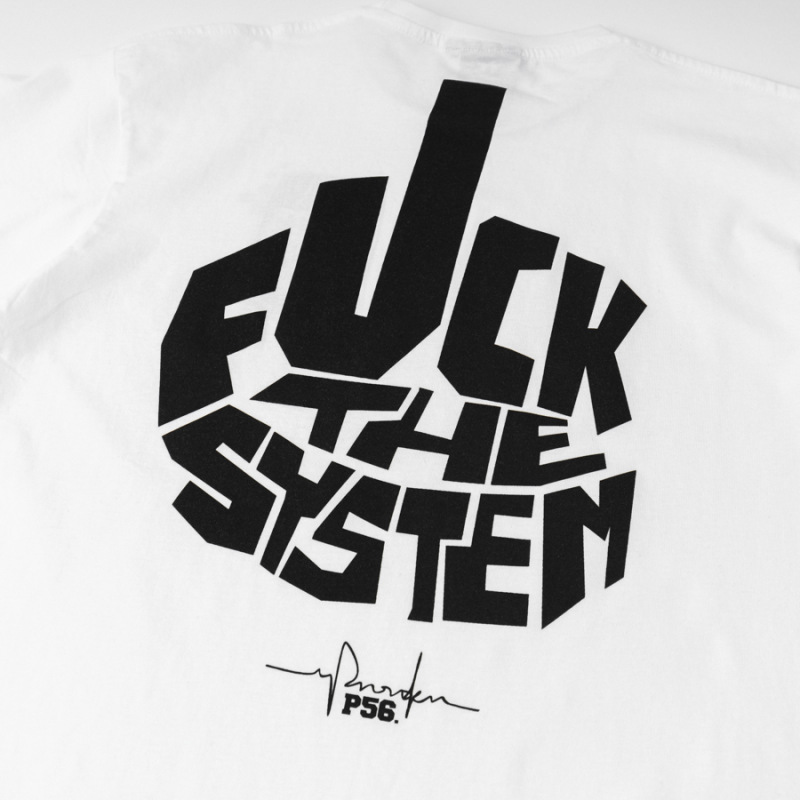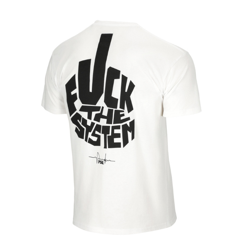 Cechy produktu: z przodu na piersi mały nadruk z tyłu na pleach duży nadruk FUCK THE SYSTEM koszulka o klasycznym kroju Regular Fit, wykonana z najwyższej jakości dzianiny