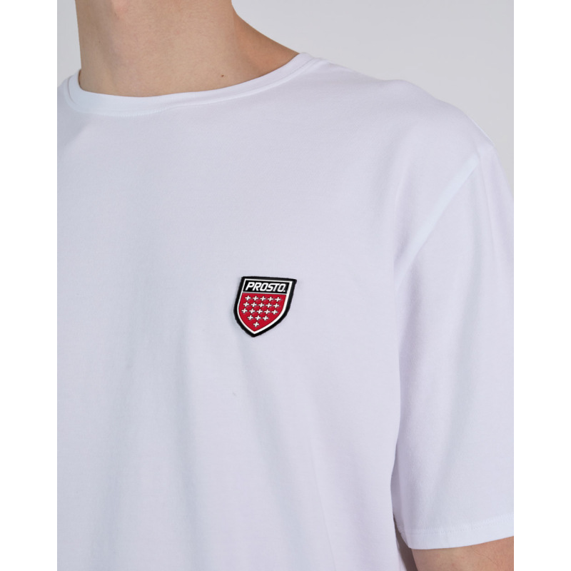 • T-shirt Slim Shield – klasyczna koszulka z kolekcji Prosto z motywem kultowej tarczy marki. Model o dopasowanym, lekko slim kroju wykonany z miękkiej, elastycznej bawełny z dodatkiem elastanu, który zapewnia wygodę i komfort noszenia. Nadruk tarczy Prosto na piersi wykonano techniką silikonowego sitodruku, co gwarantuje trwałość i subtelny efekt wykończenia. Świetna baza do budowania warstwowych stylizacji – sprawdzi się zarówno solo, jak i jako T-shirt pod bluzę czy kurtkę.