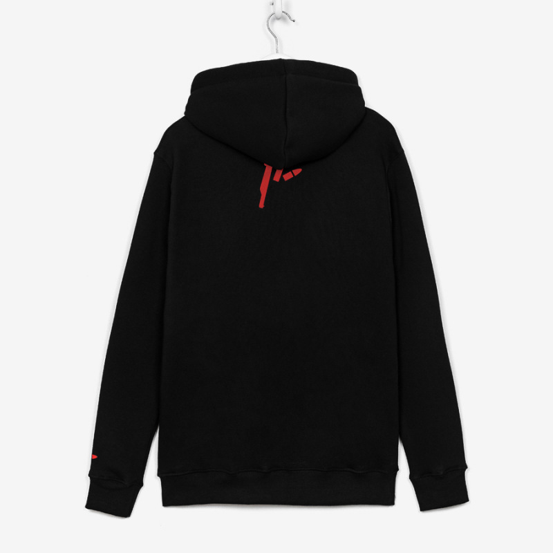 Cechy produktu: z przodu centralnie umieszczony lekko wypukły nadruk na karku oraz lewym rękawie nadrukowane logotypy kaptur ze ściągaczami dwie kieszenie przednie