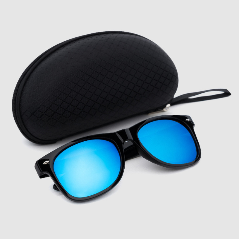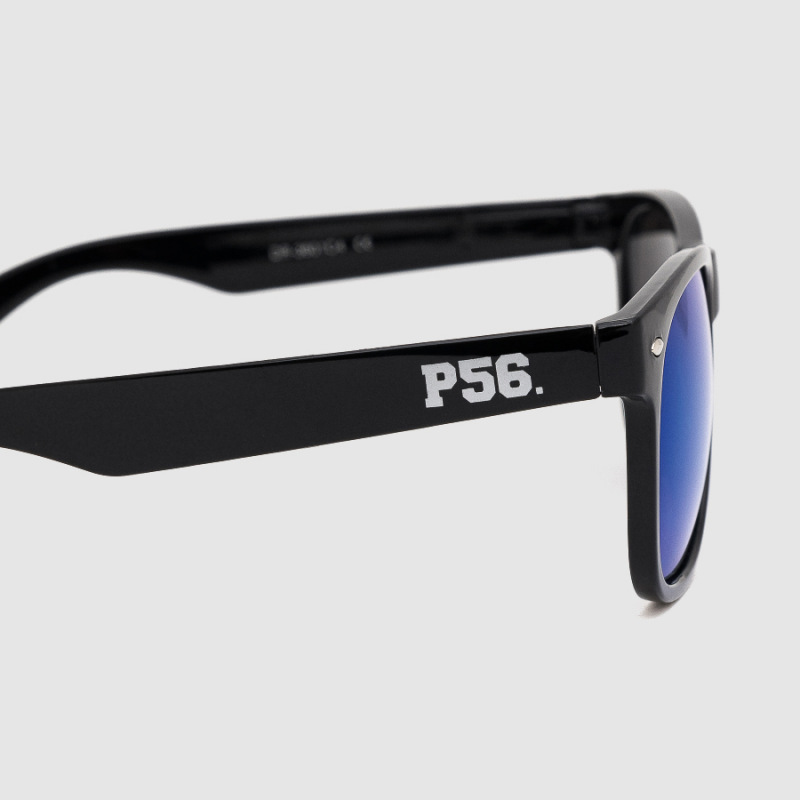 Okulary przeciwsłoneczne marki Dudek P56Szkło: niebieskieOprawka: czarny połyskCechy produktu:filtr uv400 chroniący oczy przed wpływem szkodliwego promieniowaniapo bokach oprawki logo marki P56utwardzane etui na okulary
