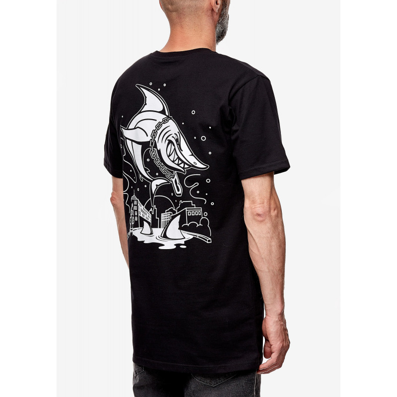 Biała koszulka BOR SHARK o regularnym kroju z okrągłym dekoltem i z wysokiej jakości nadrukiem. T-shirt BORCREW został uszyty z wysokiej jakości bawełny.