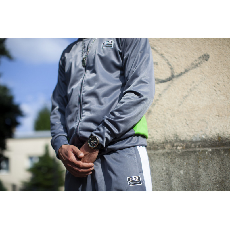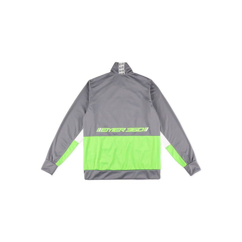 Komplet dresowy o sportowym kroju wykonany z poliestru. Na piersi oraz kieszeni wszywka żakardowa 360. W rękawach i pasie ściągacze oraz sznurek w spodniach. Na plecach druk EMER 360 wykonany haftem (na zdjęciu sitodruk). Emblemat żakardowy z logo MR w kołnierzu. Suwaki w obu kieszeniach, ściągacze w nogawkach.