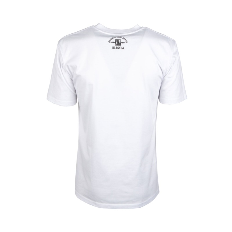 Klasyczny t-shirt w regularnym kroju z nadrukiem na przodzie i tyle. Nadruk wykonany techniką sitodruku. Koszulka uszyta z bawełny najlepszej jakości.