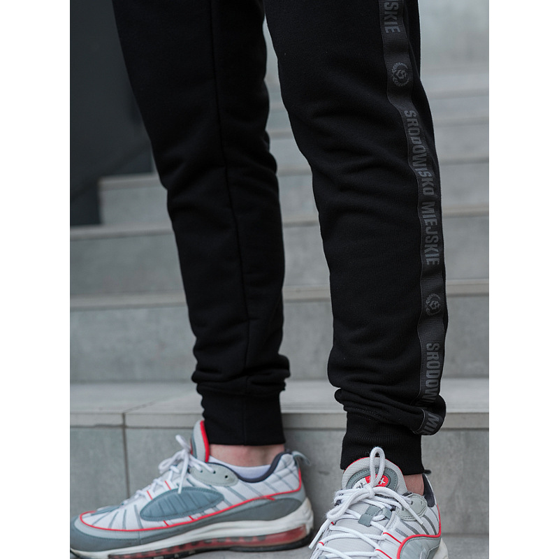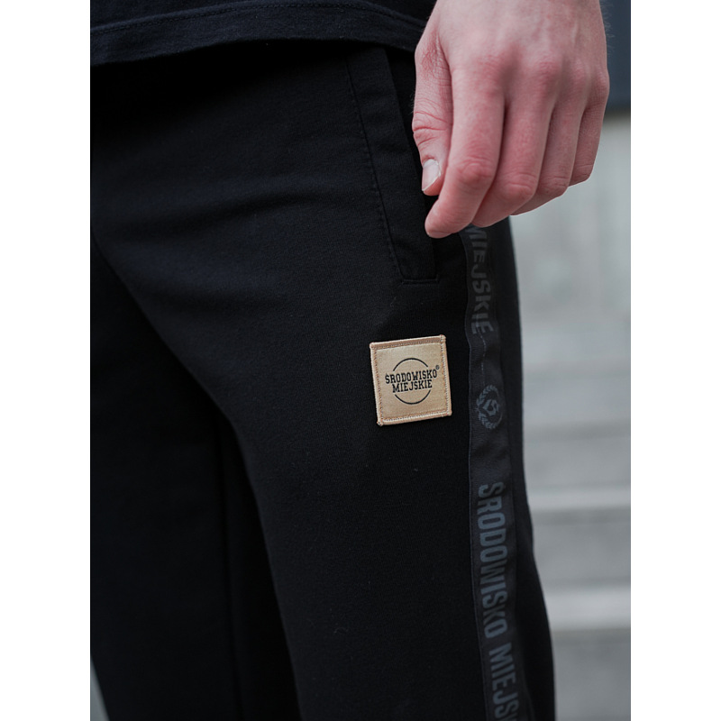 - Na lewej nogawce żakardowa aplikacja z logo