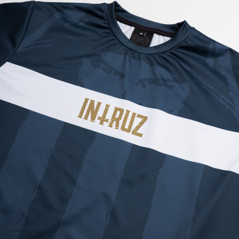 T-shirt o idealnie dopasowanym kroju zdobi delikatnie wkomponowany wizerunek artysty oraz pas na klatce ze złotym napisem "Intruz", który znajduje się również na karku. Produkt wykonany jest z wysokiej jakości przepuszczającego powietrze poliestru wykorzystującego technologię tkanin sportowych i zwieńczony został unikalnymi metkami sygnowanymi logo wytwórni.