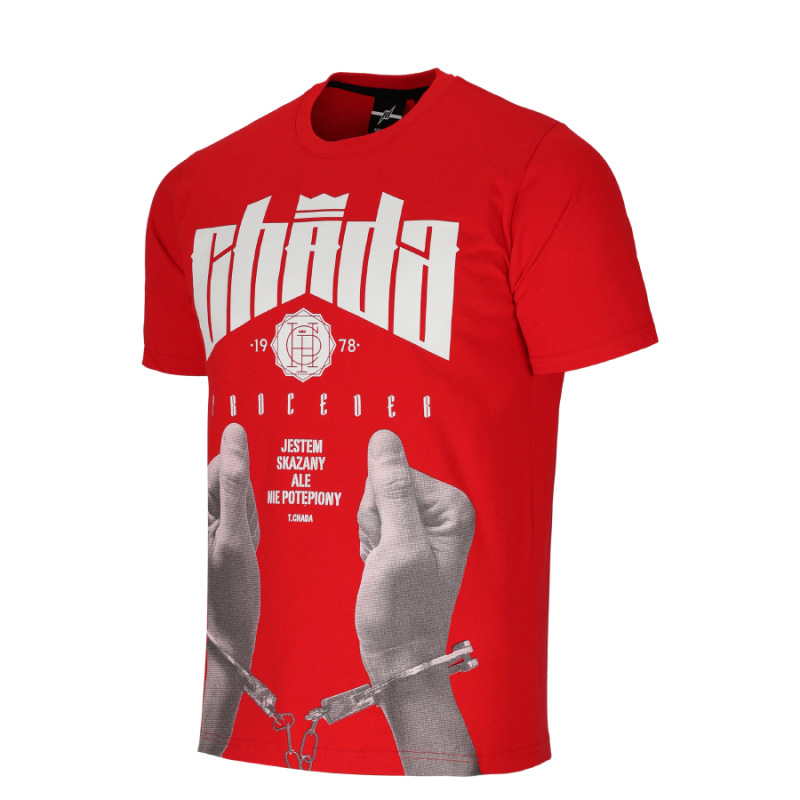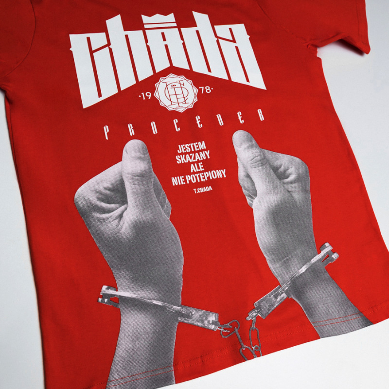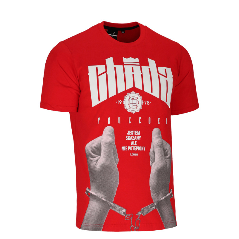 Koszulka męska marki Chada ProcederMateriał: 100% bawełnaWyprodukowano: w PolsceCechy produktu:z przodu duży nadrukw bok wszyta metkana karku żakardowa aplikacjawysoka jakość wykonania