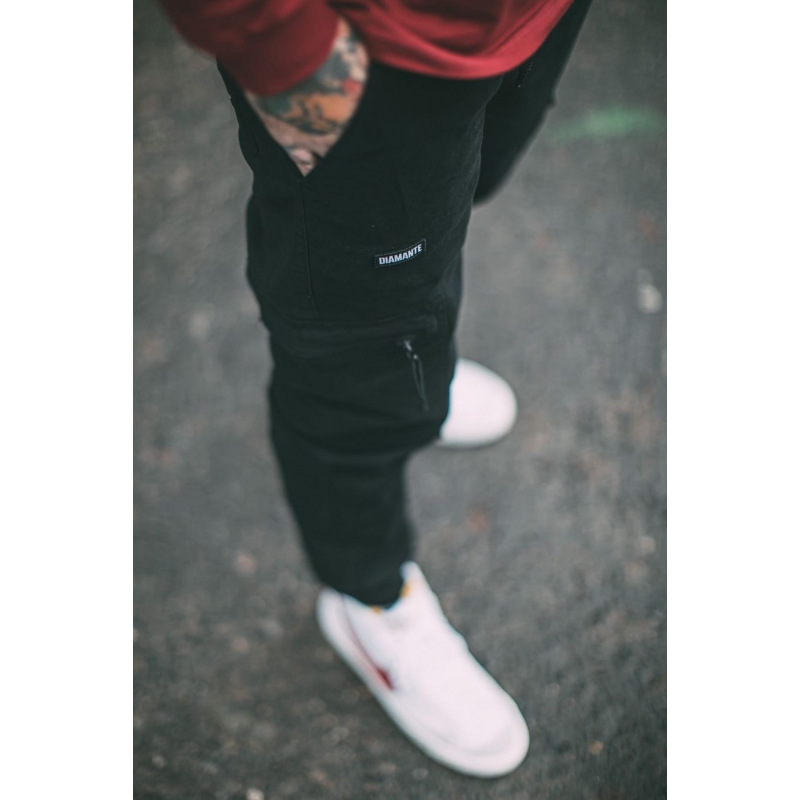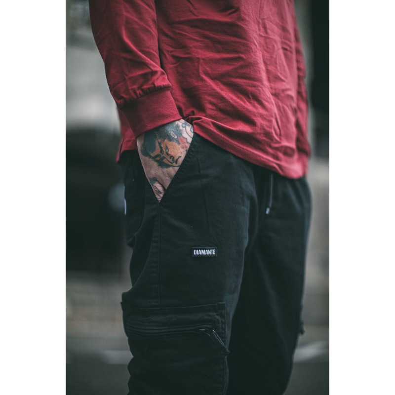 Nowy krój JOGGERÓW - V3! Nasze spodnie zostały docenione przez tysiące odbiorców, za co serdecznie dziękujemy. Idąc dalej w coraz lepsze rozwiązania stworzyliśmy nowy krój spodni i nazwaliśmy go V3. To delikatne, stylowe przeszycia na przodzie, dodatkowa mała, pięknie obszyta metka z logo DIAMANTE na udzie oraz głebsze kieszenie uszyte trochę inaczej. Na tyłku spodnie są inaczej skrojone, a na kieszeni posiadają nowy haft - DIAMANTE CREW. Haft lekko zmniejszyliśmy, żeby był jeszcze bardziej stylowy. Wersja CARGO posiada dodatkowe boczne kieszenie na zamek.