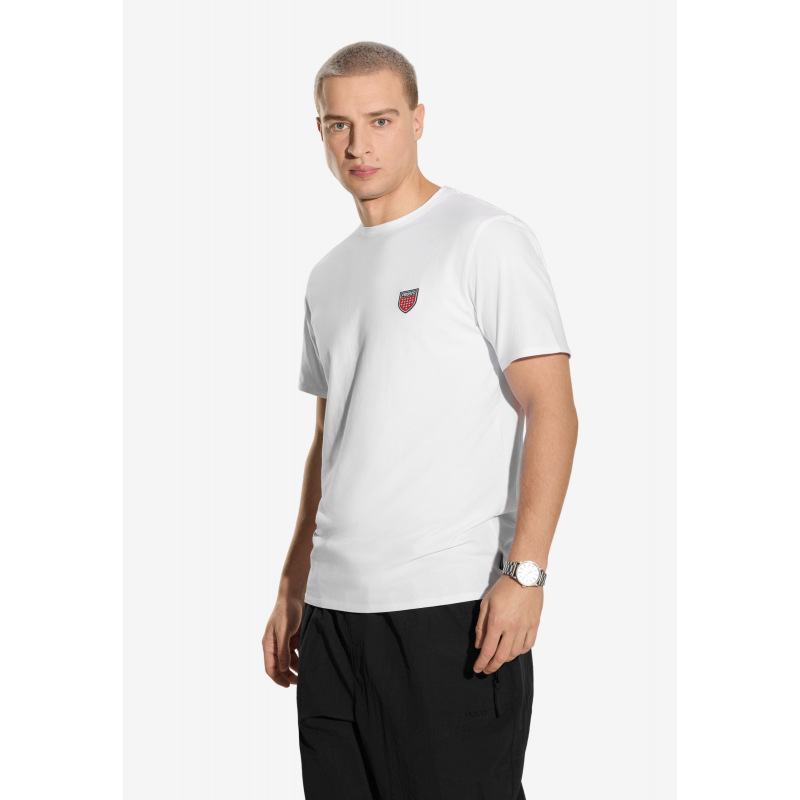 • T-shirt Slim Shield – klasyczna koszulka z kolekcji Prosto z motywem kultowej tarczy marki. Model o dopasowanym, lekko slim kroju wykonany z miękkiej, elastycznej bawełny z dodatkiem elastanu, który zapewnia wygodę i komfort noszenia. Nadruk tarczy Prosto na piersi wykonano techniką silikonowego sitodruku, co gwarantuje trwałość i subtelny efekt wykończenia. Świetna baza do budowania warstwowych stylizacji – sprawdzi się zarówno solo, jak i jako T-shirt pod bluzę czy kurtkę.