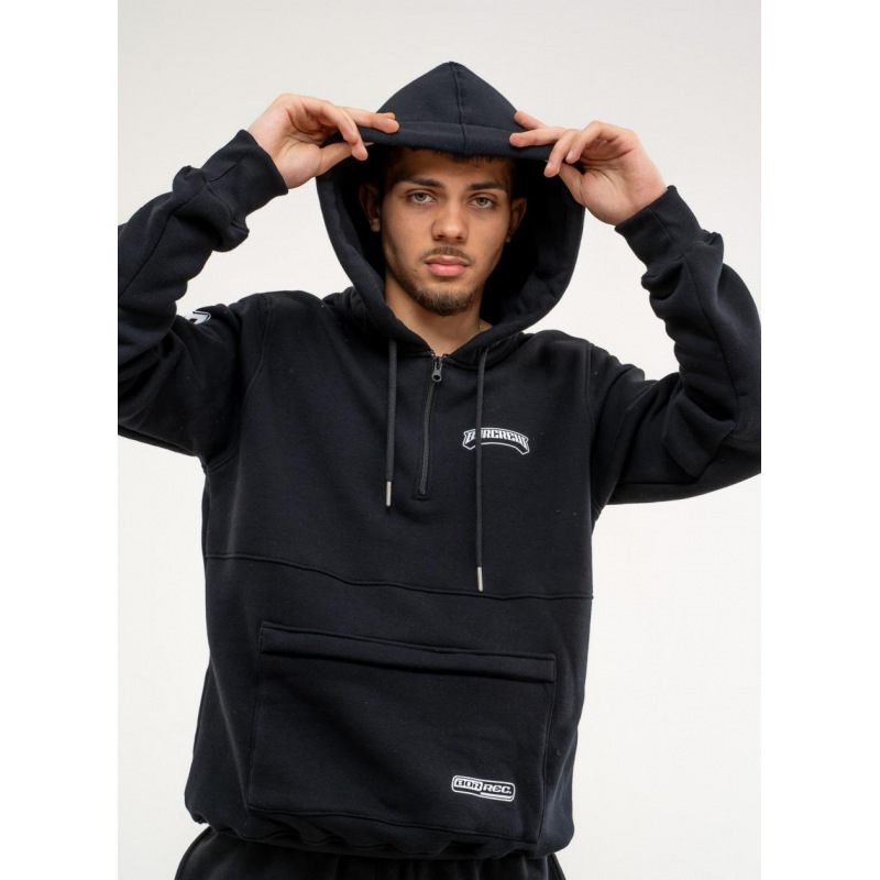 Bluza z kapturem BOR HALF ZIP o luźnym kroju z kieszenią na przodzie zapinaną na zamek.